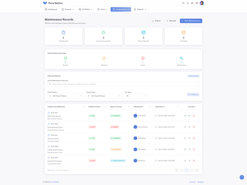 • 🧰 维护管理:创建并跟踪维护记录,并实时获取电源/视觉状态更新。