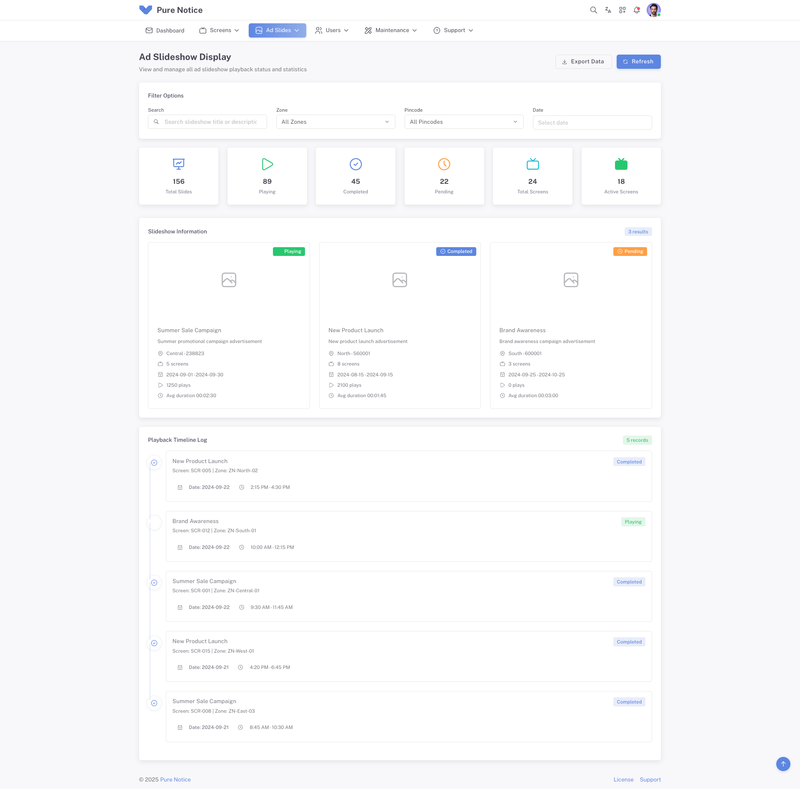 • 🎬 广告轮播控制:按区域和时间表管理播放活动。