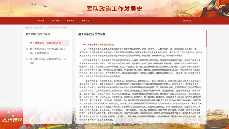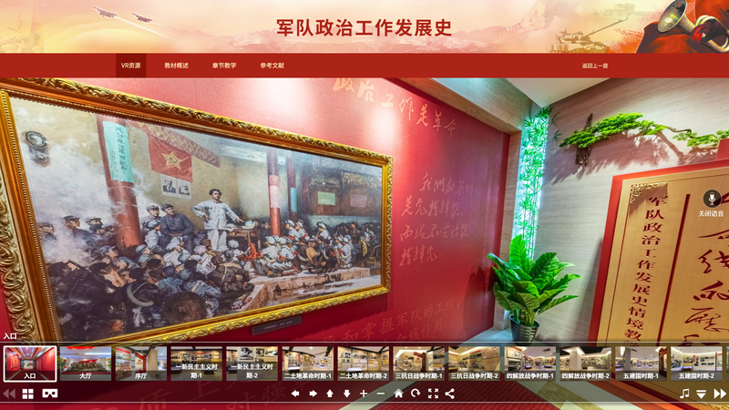 2.军队政治工作发展史教学馆的VR展示,各种影像、图像资源等由甲方提供,我负责VR资源展示