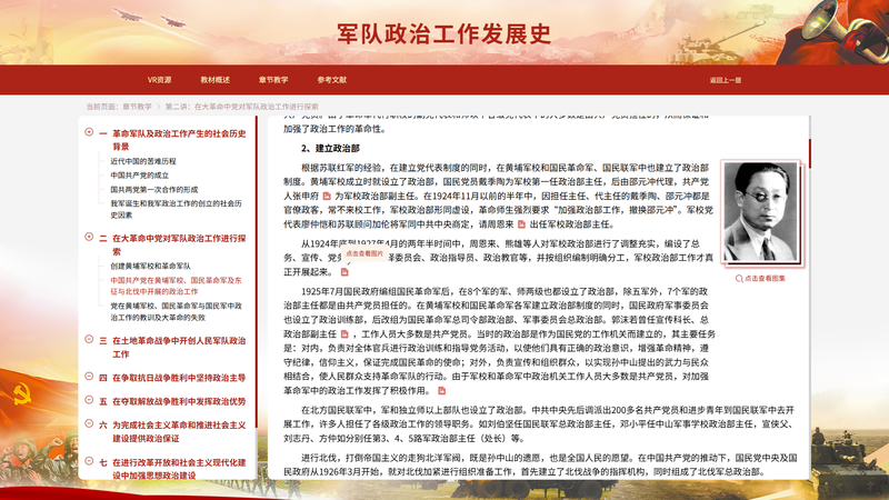 1.分章节对革命历史进行讲解,侧边栏导航、图集展示功能等等都是按照甲方要求定制的