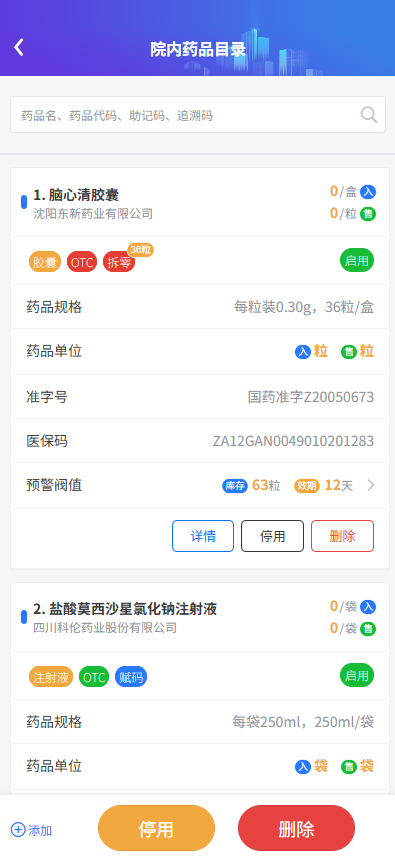 (6)拆零药品自动赋码,满足门诊/住院拆零场景,拆零库存已用/未用数量实时查看;