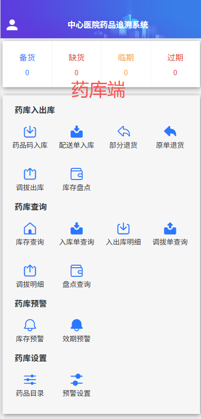(8)可实药品采购、调拔、发药品、退药全程可追溯;