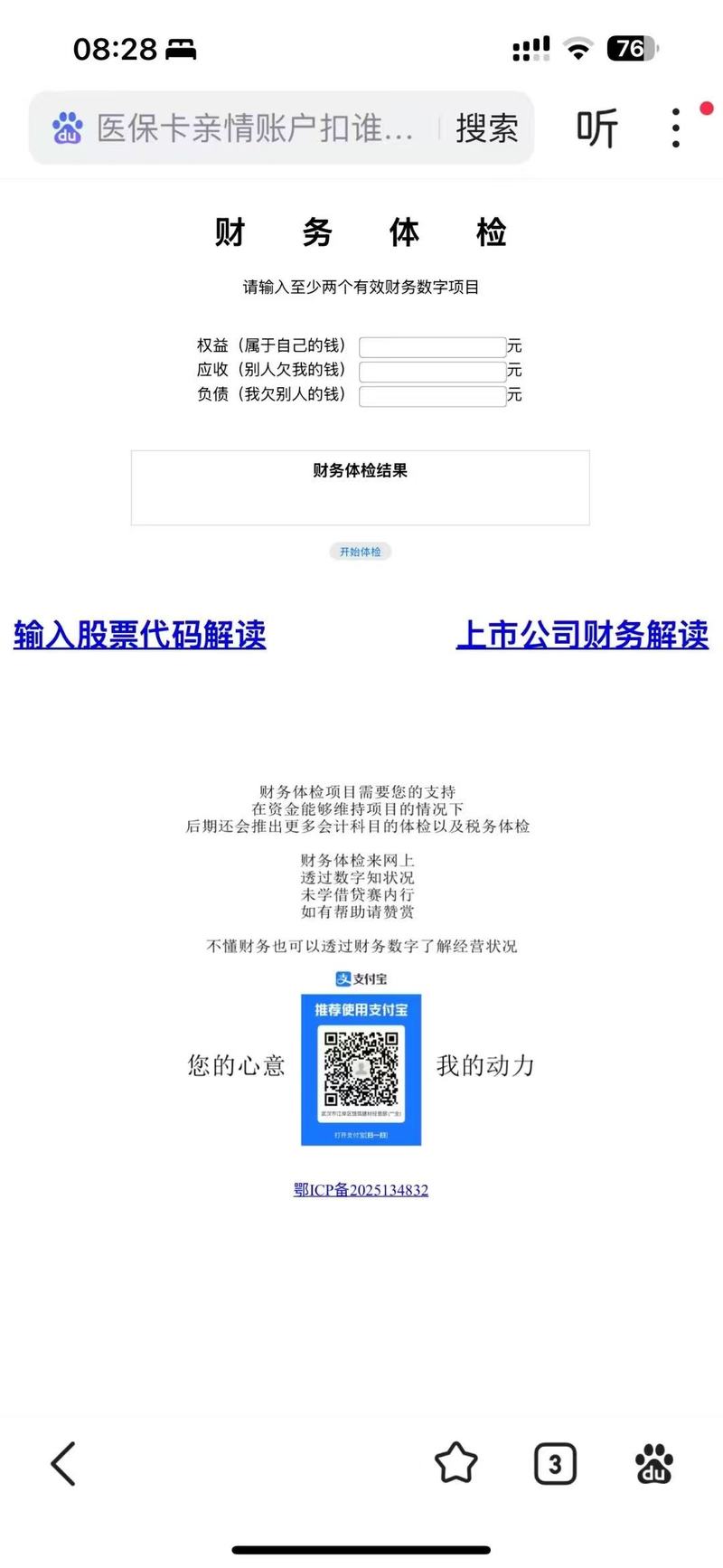 财务体检网站 可以 帮助 不懂财务的人 通过 输入 财务数值 便知道 经营状况如何