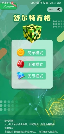 ● 项目概述:该项目是一款测试眼力和专注力的小游戏,游戏开始后会随机生成25个数字方格,玩家只要按照从小到大的顺序依次点击对应方格积累一定分数即可通关,为了增加游戏趣味性,有简单、困难、无尽三种模式,游戏结束会生成排名