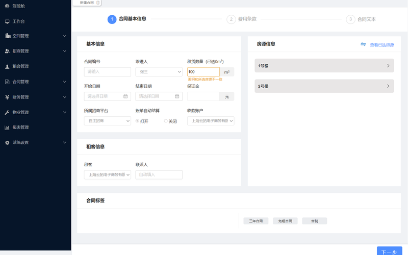 财务管理:根据电子合同条款自动生成收入计划表、账单等,实现财务核销自动化,打造合同签订- 租金收取- 现金流测算的全流程资管闭环。