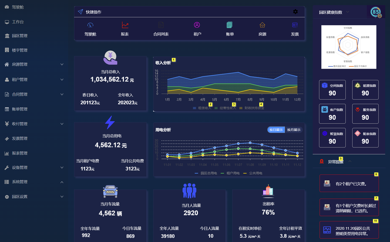 为园区提供智慧化及数字化整体解决方案,包括资产管理、招商管理、合同管理、收缴管理、智慧物业、数据大屏等各个方面