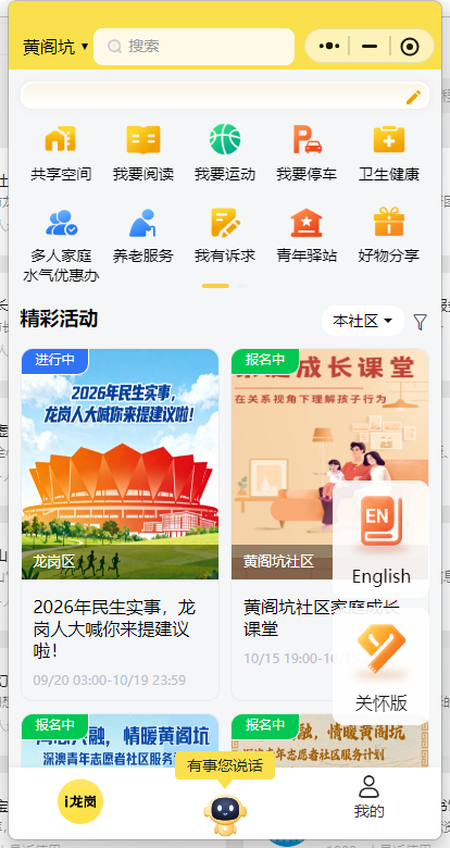 1. 基础功能:小程序端业务办理、诉求反馈、15 分钟生活圈查询;管理端业务审批、数据统计。