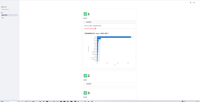 3.查看已提交的工作流的状态,对已经爬取的工作进行分析。