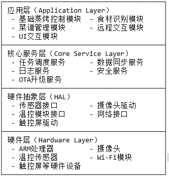 现有竞品短板:当前市场主流蒸烤一体机(如西门子 HS636GDS1W、美的 BS5052W)仅支持基础远程控制,无食材图像识别功能;少数带摄像头的产品(如老板 CQ979)仅能实时视频,无 AI 识别与菜谱联动。本项目 “识别 + 菜谱 + 远程” 的一体化功能具备差异化竞争优势。
