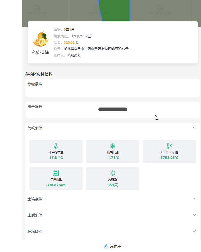 宜昌城市大脑桔都茶乡地标性农产品指数信息化建设项目主要覆盖三类用户,一是面向各级农业主管部门,建设了一个数据大屏和一套管理后台,大屏由产业产业概况、农业主体、指数发布和预测预警4个部分组成,为农业部门掌握产业底数、服务产业发展和加强产业调控提供帮助。二是面向各类涉及柑橘的新型农业经营主体,通过宜格服务小程序的形式为新农主体提供种植适宜性评价服务,从而选择最适宜的作物进行目标作物的种植,进行资源合理利用和效益最大化;利用物联网技术建立柑橘茶叶病虫害监测预警模型对在柑橘茶叶常见品种的生产过程中发生的主要病虫害进行监测和预警,新农主体和农户在手机端小程序即可收获病虫害预警提醒,从而提前采取预防措施,减少农作物损失;通过气象预警服务,可以有效地指导农事活动,避免极端天气造成产量损失;利用移动端APP获取田块的墒情、土壤肥料和积温积雨等数据,更加科学精准指导农事活动。三是面向普通市民,实现了市场行情实时掌握,品牌文化宣传,产业政策推广普及,产品采购导航推介等功能,进一步为产业高质量发展助力。同时系统还配套建设了一套数据采集系统(包括移动端和管理后台)和4个模型(种植适宜性模型、行情预测模型、柑桔估产模型、农事识别模型)。