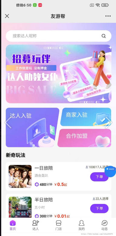 - **个人主页展示**:用户可上传兴趣标签、过往约搭动态(如“上周和搭子打卡了网红咖啡馆”)、技能特长(如“擅长规划旅行路线”),帮助他人快速了解