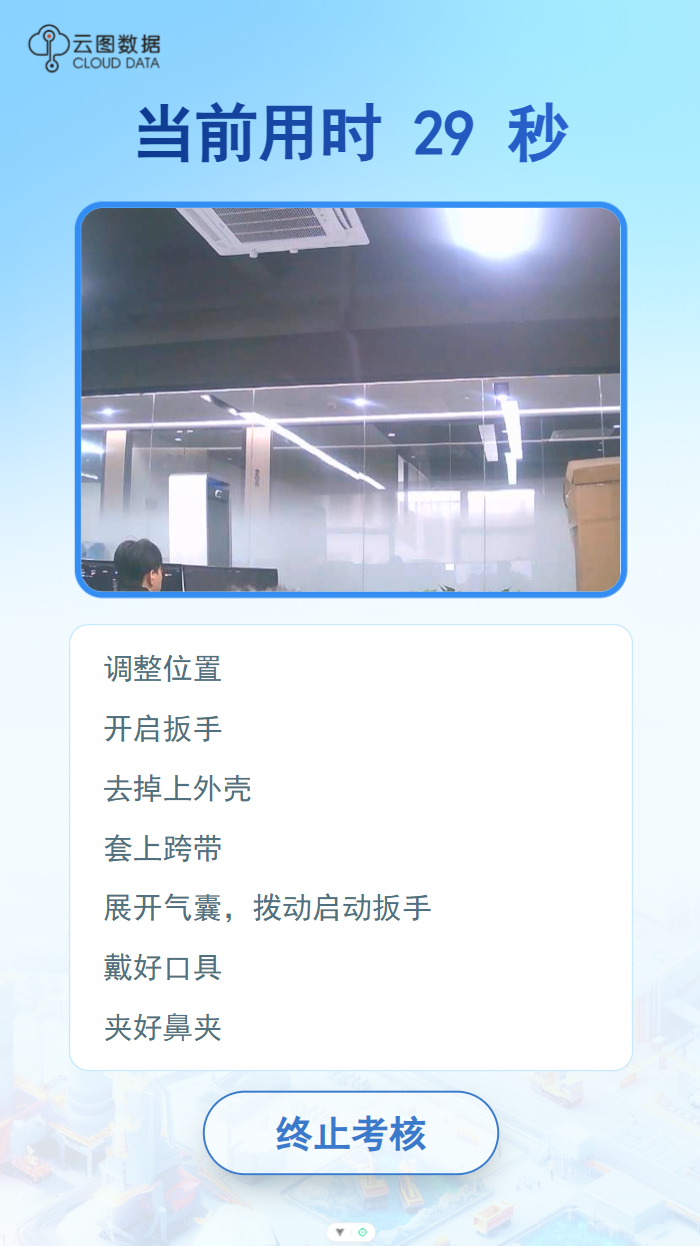 旨在解决传统矿工自救器考核中人工监考效率低、标准不统一、步骤判定模糊的问题,同时破解培训与考核脱节、成绩异议难追溯、作弊难管控等痛点,通过人脸识别、动作识别技术实现考核自动化,以视频培训、模拟考核强化实操能力,借助管理后台实现员工与成绩的精细化管理,提升考核与培训的规范性、效率及可追溯性。