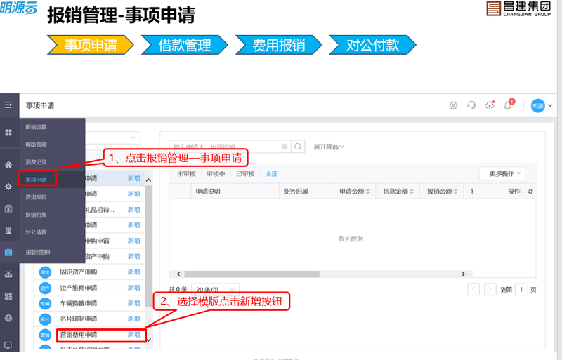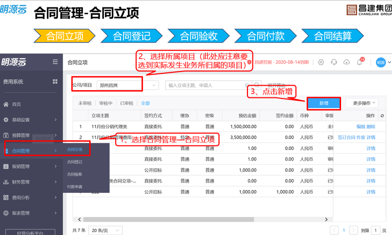 功能模块:合同管理、预算管理、报销管理、财务管理、费用分析等。