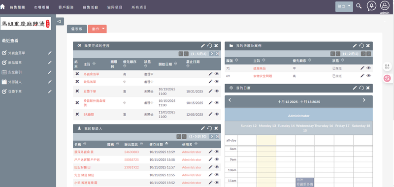 数据化运营仪表盘: 提供核心经营数据可视化,包括营业额、订单量、热销产品排行和客户分析,为决策提供支持。