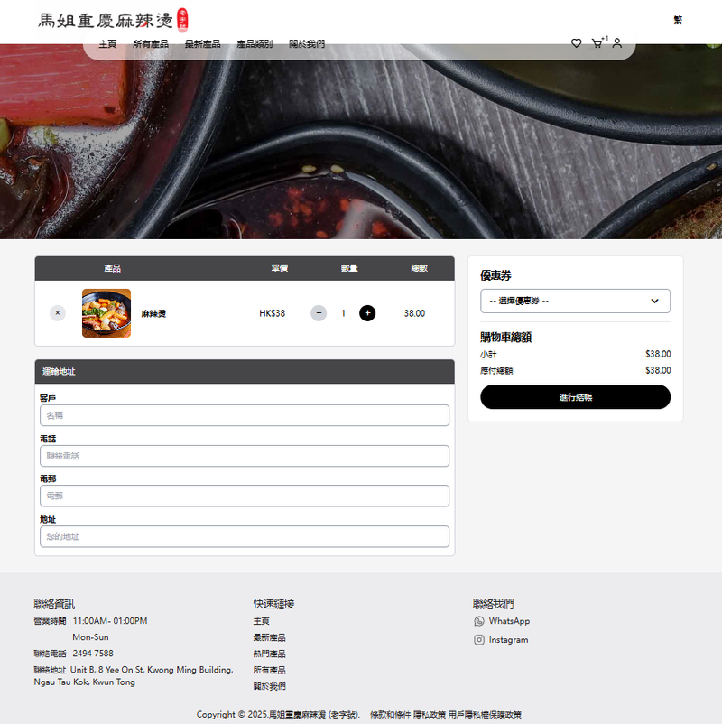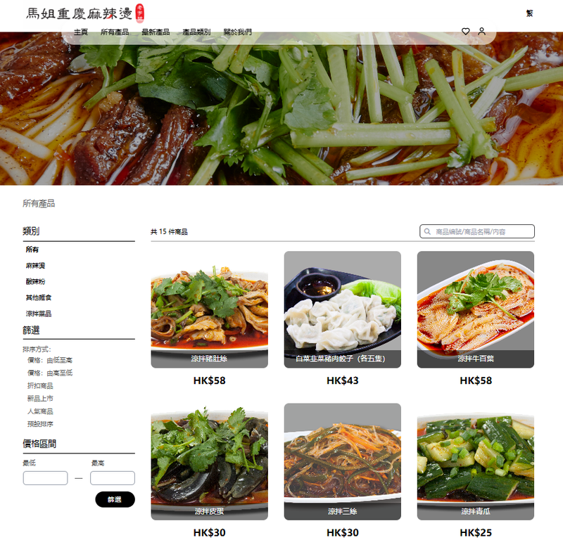 产品展示:高清图片展示菜品,支持按分类(如:经典汤底、素食、丸滑类)和热度筛选。