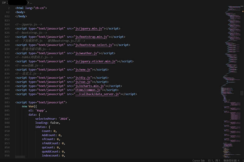 在此项目中,从后端数据采集,数据治理与分析,使用.net core +sqlsugar 调用达梦数据库进行数据逻辑处理,返回接口到前端,前端使用html+vue+js进行API调用数据交互及呈现.