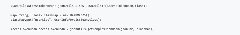 一个封装了json-lib的工具。 使用方法: 1 字符串转换成Java对象(POJO) 2 Java对象转换成字符串 3 复杂对象的处理(Java对象中含有List,Map,Array等对象)