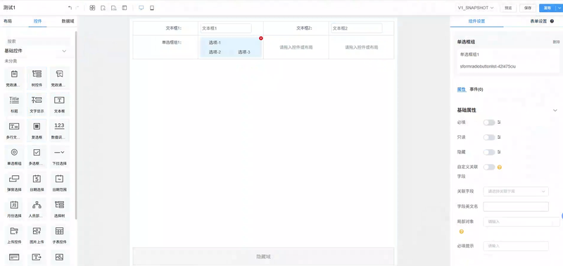 2、采用通用配置能力快速完成政务领域不同业务的表单绘制、修改、版本维护