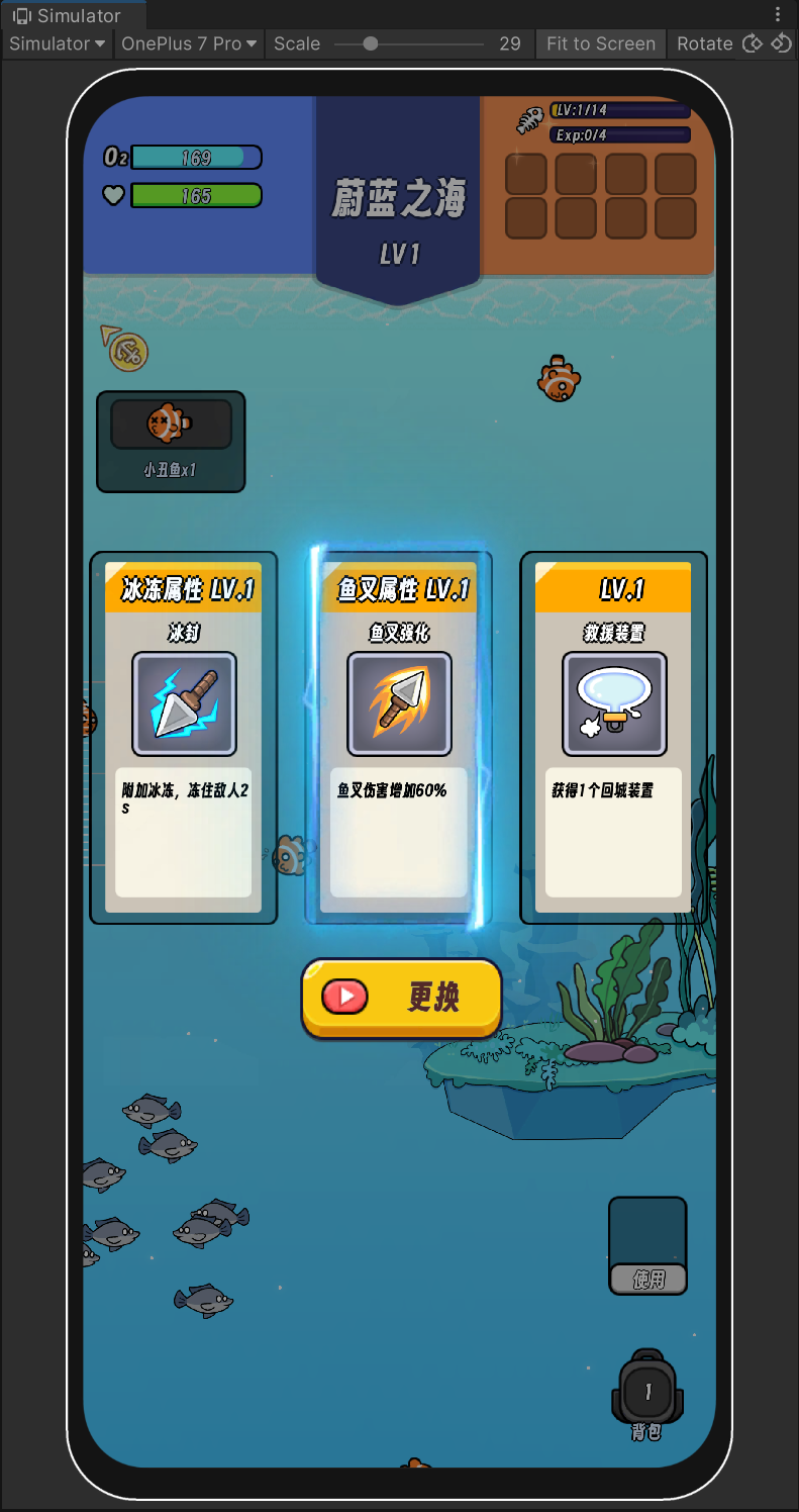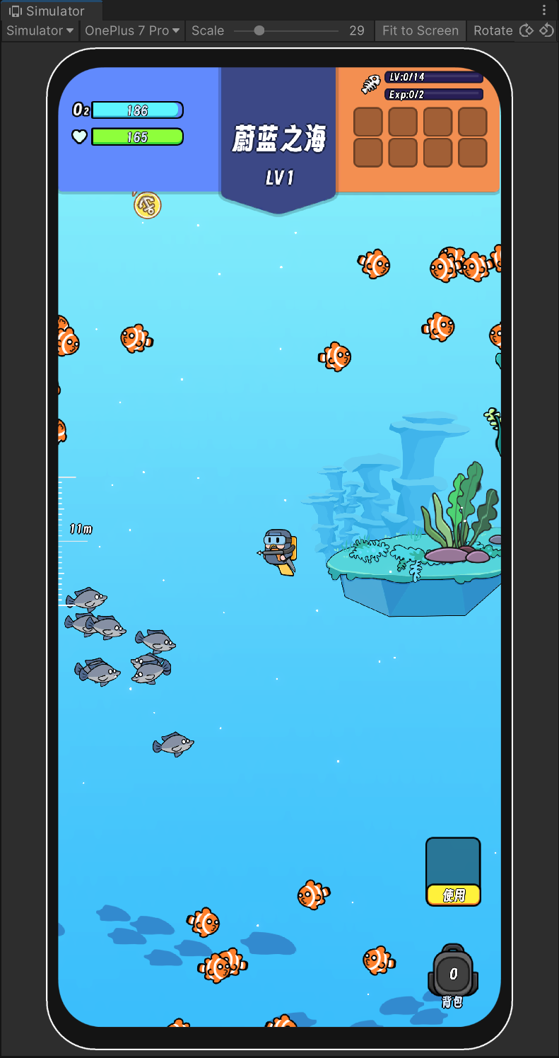 1.这个项目主要分成两个部分,一个是岸上的模拟经营,一个是水下的战斗闯关。
