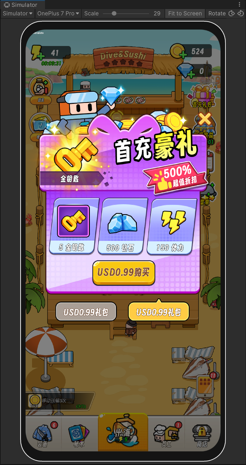 1.这个项目是模仿2023年Steam上比较火的潜水员戴夫开发的手机游戏。