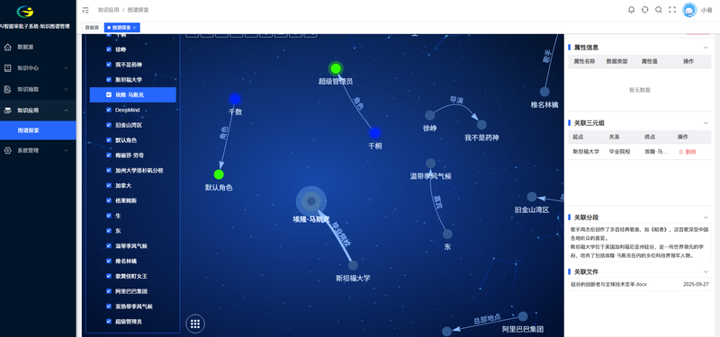 1. 知识中心、概念配置、关系配置、多数据源抽取、图谱探索、知识图谱血缘可视化。