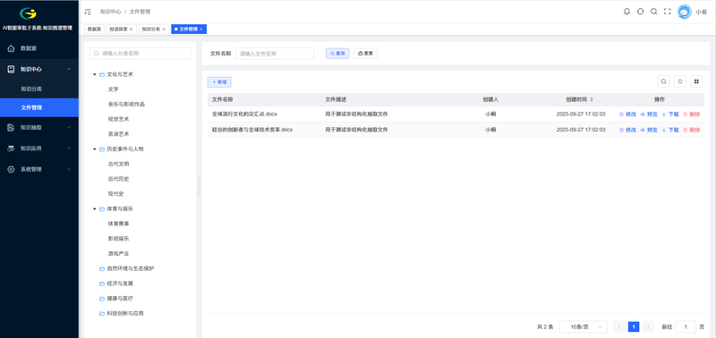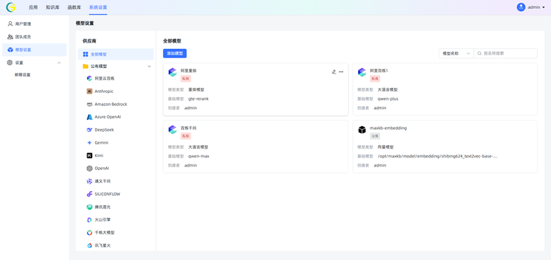 3. RAG知识智能问答,构建基于大语言模型(LLM)与知识图谱的智能问答系统,支持自然语言交互查询;包括大模型管理、向量知识库、函数工具和高级编排RAG智能应用。