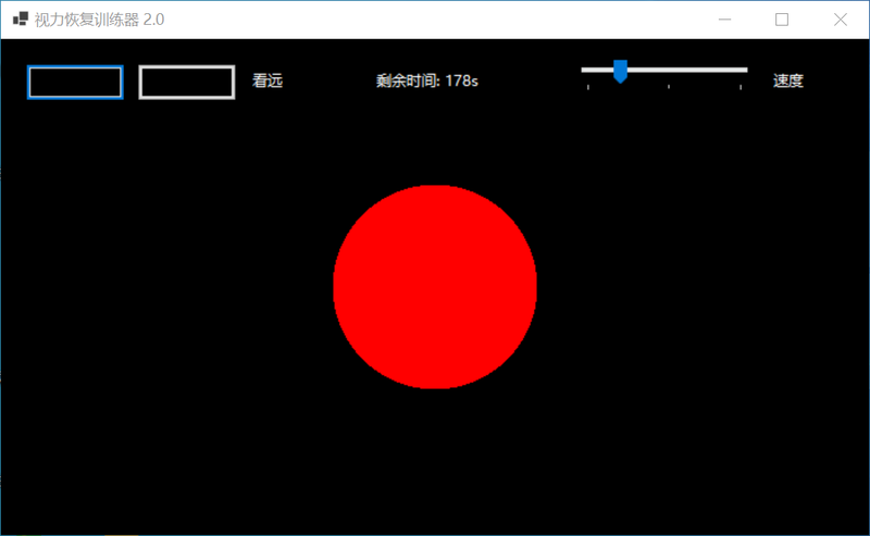 2,通过大小来模拟远近,有一个红色的圆点,它的大小会变化不停,一下子小一下子大,就是远近调节。而且有声音配套,说看远,看近,非常科学。而且120秒它会自动停止,让四眼们休息一下