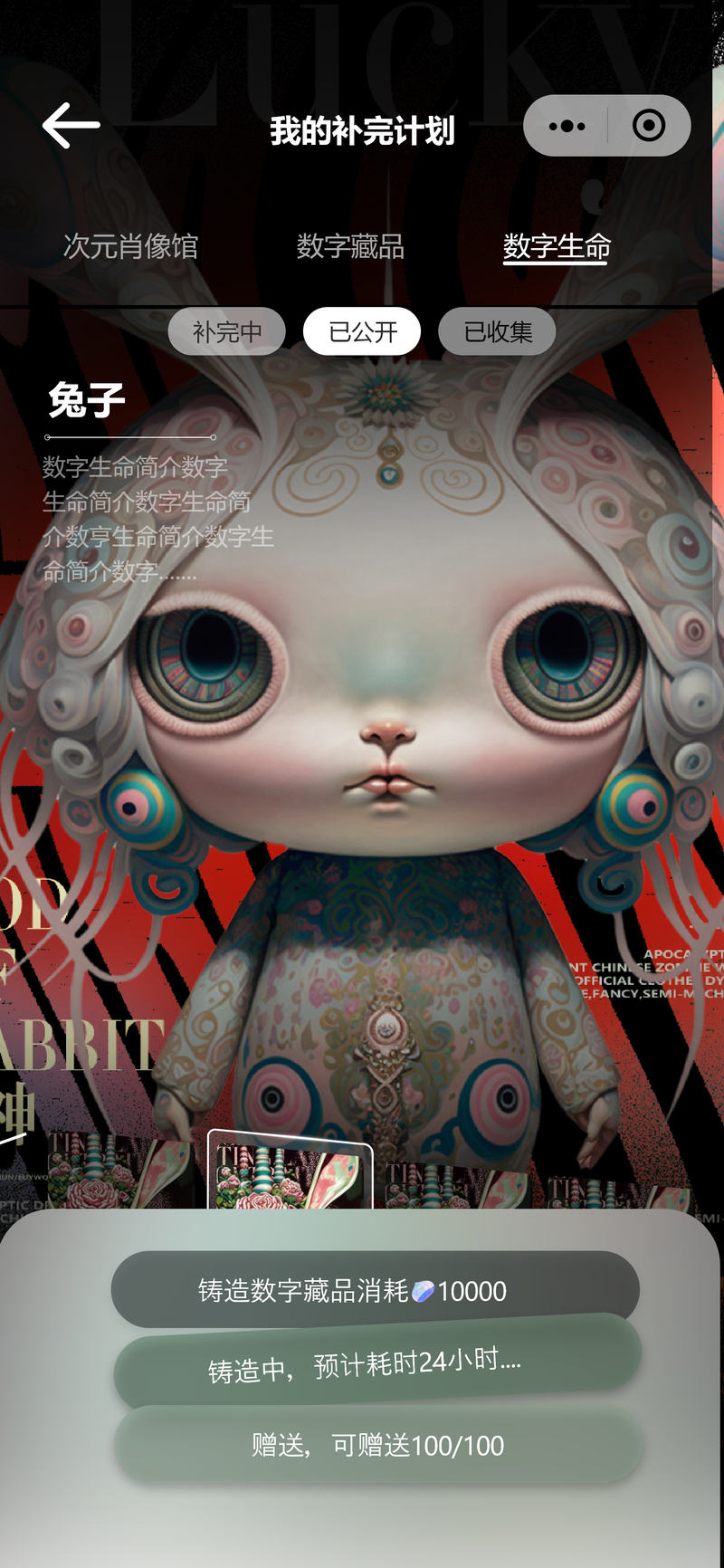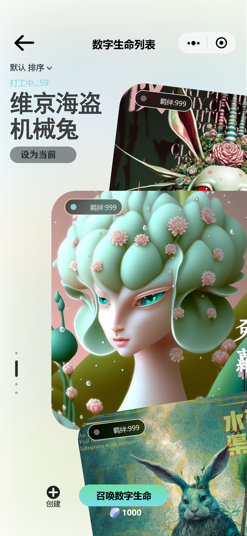 ② 玩家共创与生态循环:在小程序端,玩家可通过“事件卡”系统对官方内容进行“续写”和“创作”,形成UGC内容沉淀。公开的“数字生命”可被其他玩家抽取、收集,并通过点赞、绑定故事卡等方式提升其“灵感值”,形成一个活跃的共创社区。