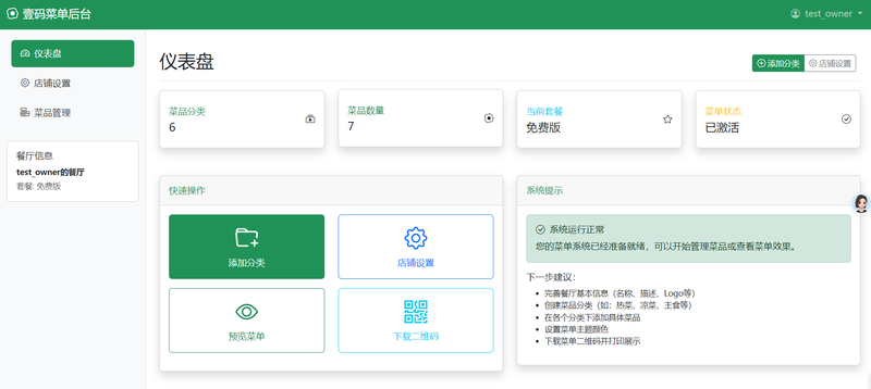 壹码菜单是一个专为中小型餐饮企业设计的菜单管理系统。通过简单的后台管理界面,餐厅可以轻松创建、管理和更新在线菜单,并生成二维码供顾客扫码点餐。