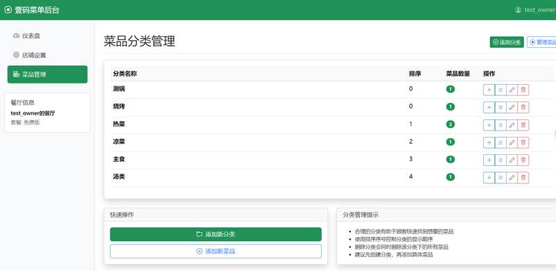 分类管理 - 创建和排序菜品分类