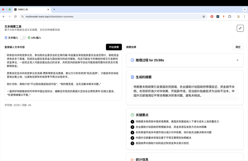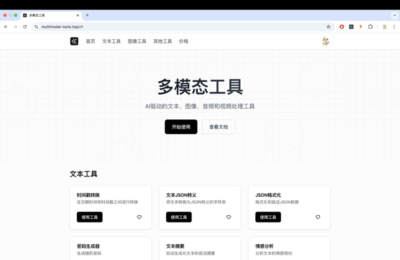 “多模态工具”(https://multimodal-tools.top/zh)网站是一个集合式的 AI 工具平台,提供了多种文本、图像、其他用途的小工具,旨在帮助用户提高生活和工作中部分场景的效率。