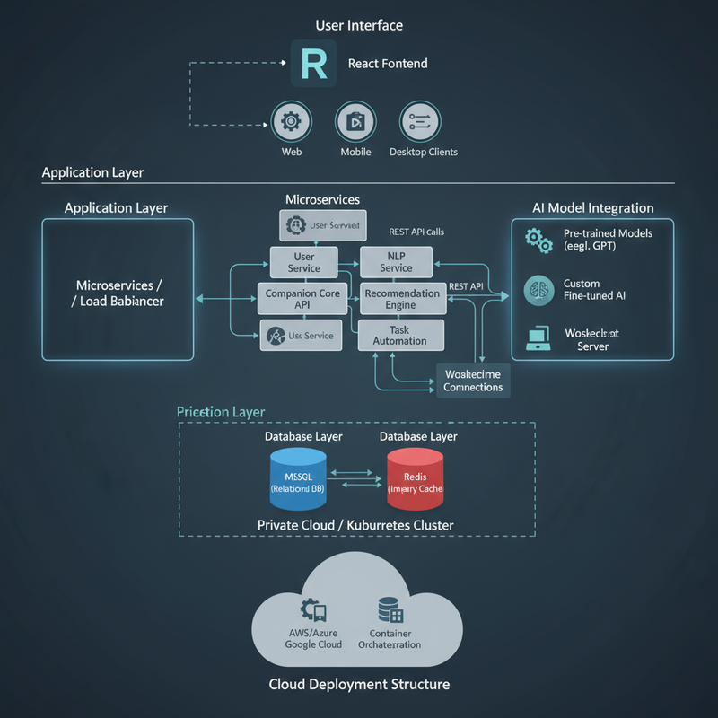 意在开发一套稳定、安全、可扩展的AI云服务系统,为量产型陪伴机器人硬件提供软件支持,核心实现用户管理、AI驱动的人机交互、角色养成、会员服务及数据管理等功能