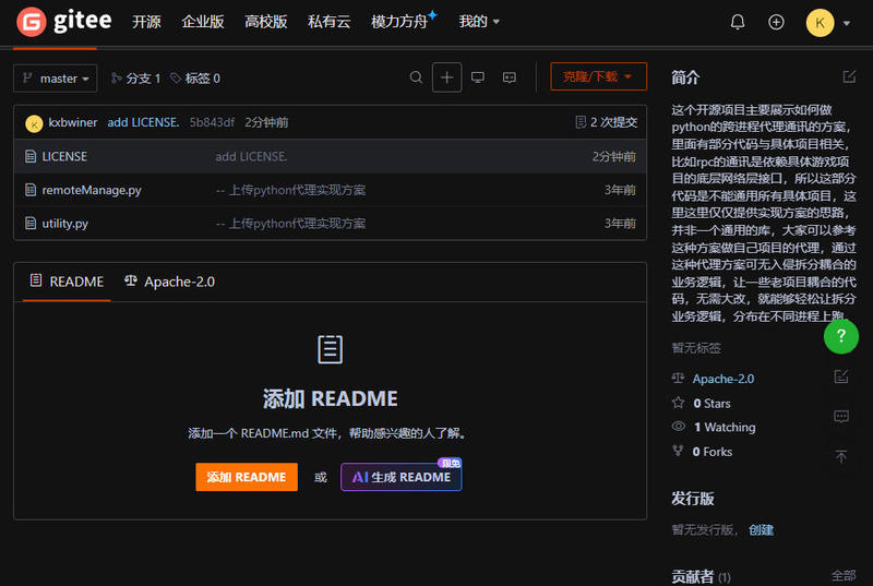这个开源项目主要展示如何做python的跨进程代理通讯的方案,里面有部分代码与具体项目相关,比如rpc的通讯是依赖具体游戏项目的底层网络层接口,所以这部分代码是不能通用所有具体项目,这里这里仅仅提供实现方案的思路,并非一个通用的库,大家可以参考这种方案做自己项目的代理,通过这种代理方案可无入侵拆分耦合的业务逻辑,让一些老项目耦合的代码,无需大改,就能够轻松让拆分业务逻辑,分布在不同进程上跑。