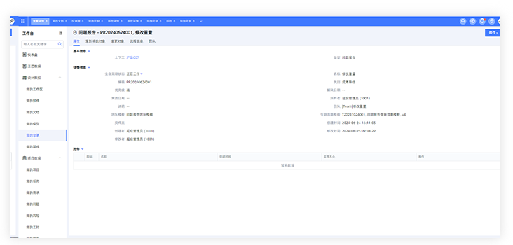 版本与变更管理:自动记录数据修改历史(如设计图纸的 V1.0→V2.0 迭代),支持版本对比、回滚,避免 “用错旧版本” 导致的生产失误;针对设计变更、工艺变更,发起标准化变更流程(ECR 变更请求→ECO 变更指令→变更执行→变更通知),自动标记受影响的 BOM、生产工单、供应商,确保变更全链路可追溯。