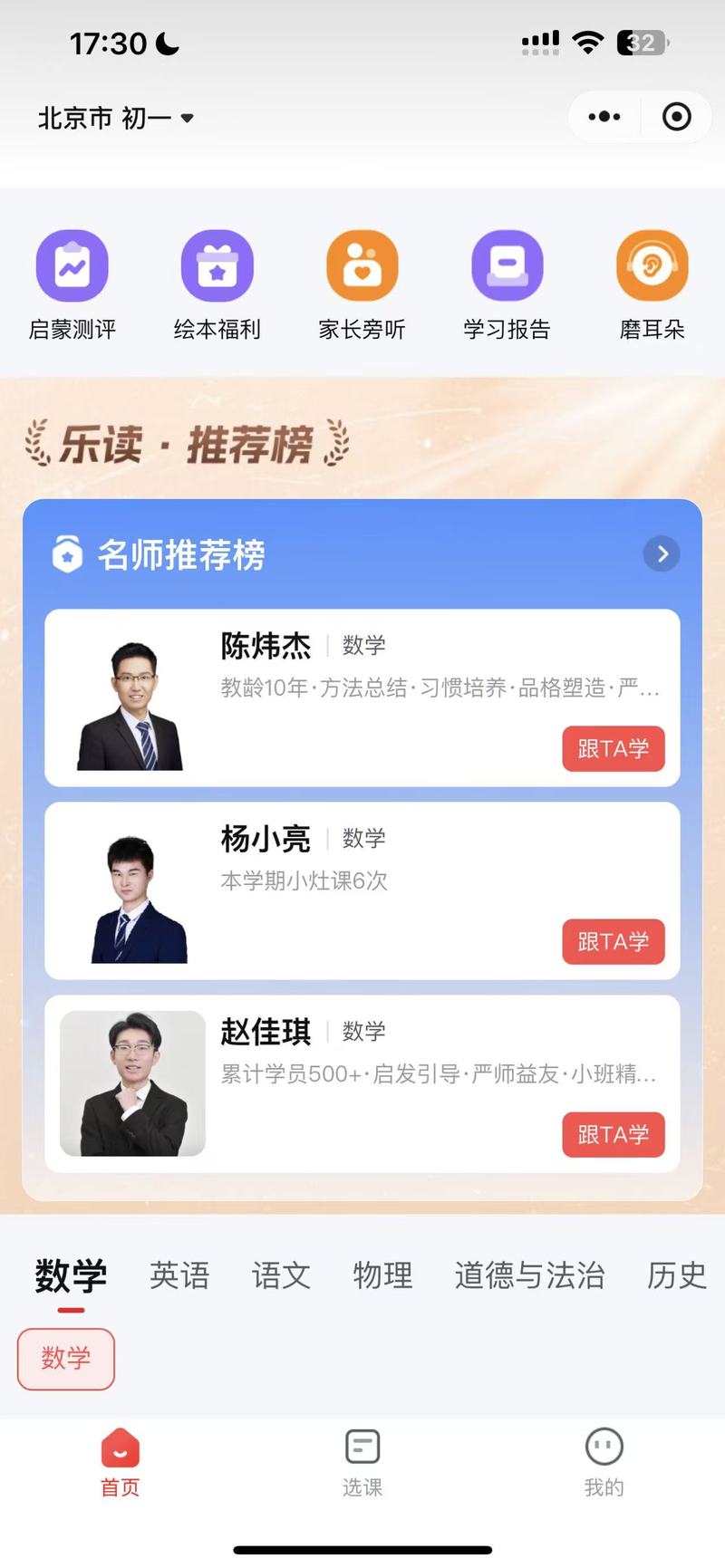 乐读小程序集招生营销(拼团、分销)、智能教务(排课、考勤)、家校服务(课堂点评、作业通知)和数据分析于一体。通过打通微信生态,乐读帮助机构轻松获客、提升运营效率和家长满意度,最终实现续费增长和品牌升级,是一个全场景的智慧运营解决方案。