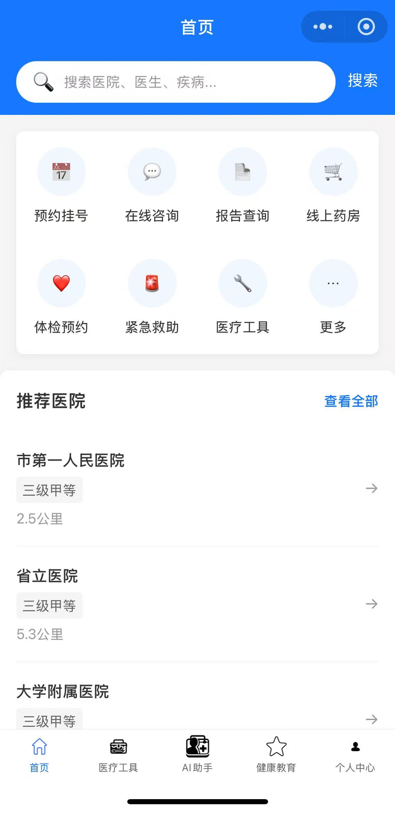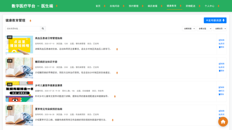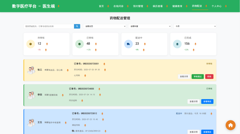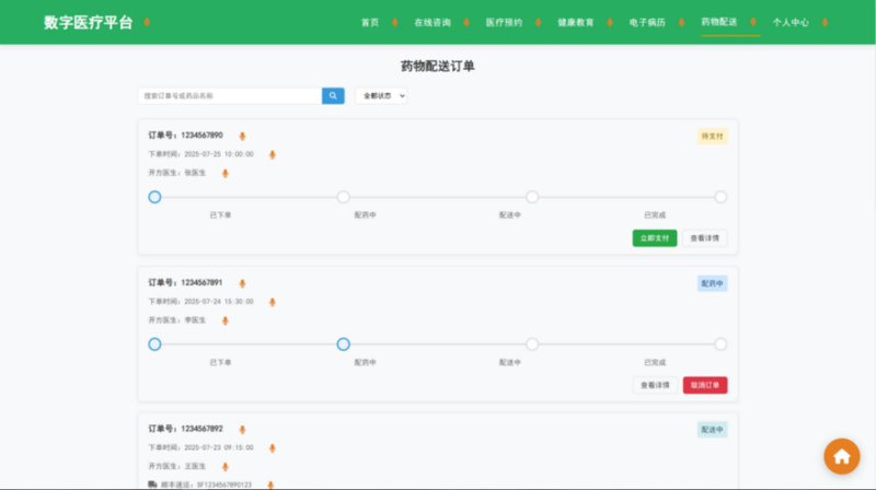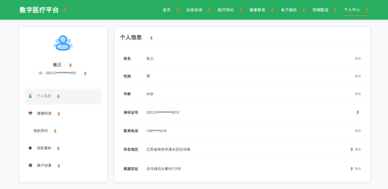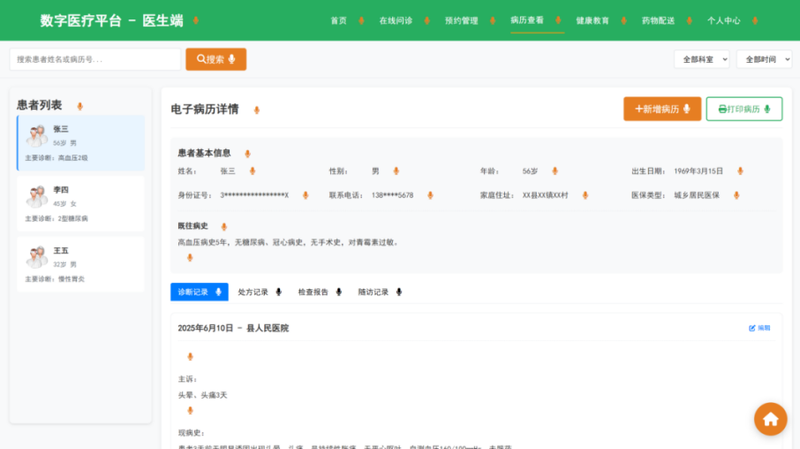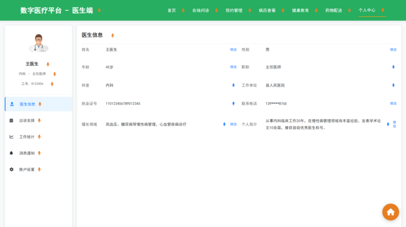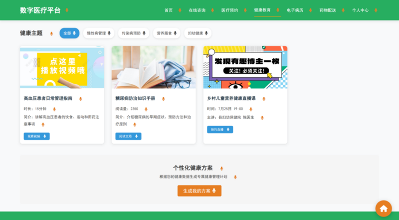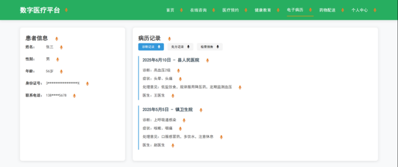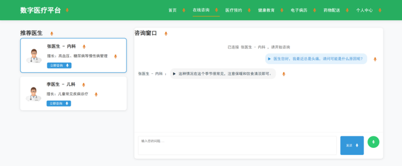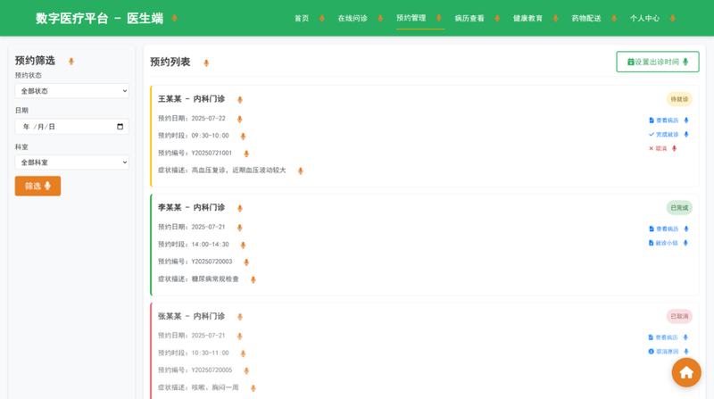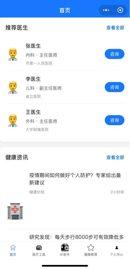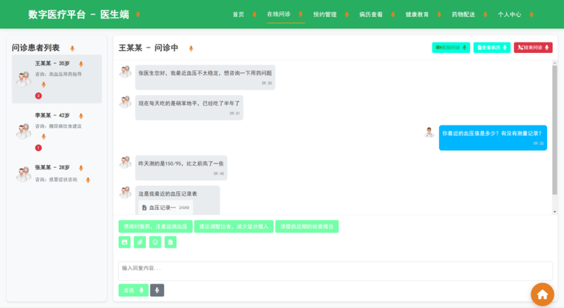 (2)实现医生端(在线问诊、AI辅助诊断)和患者端(预约挂号、健康档案查询)的前端交互逻辑;