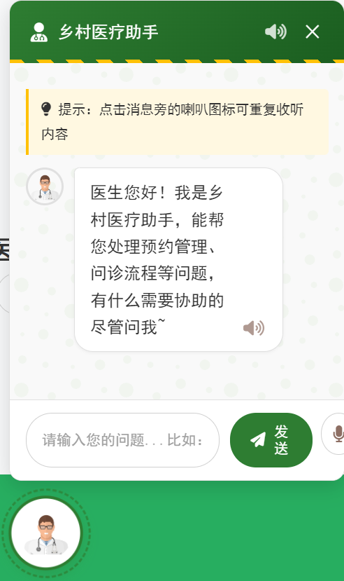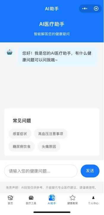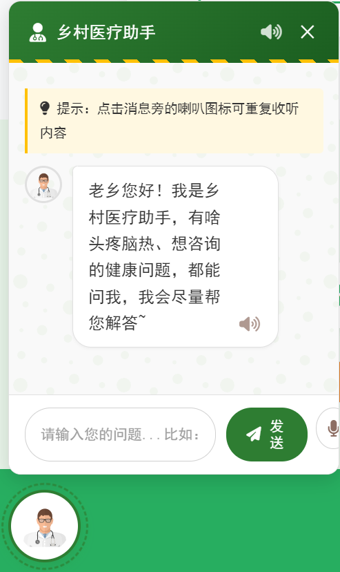 (5)特色辅助模块:乡村医疗AI助手栏目。