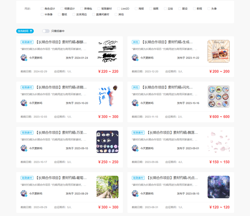 为画师提供一个集素材售卖、作品分享、设备软件购买、约稿等需求的为一体的平台,用户通过该平台可以生产素材获取收益、一站式购买绘画需要的软件和硬件,从零开始学习绘画。