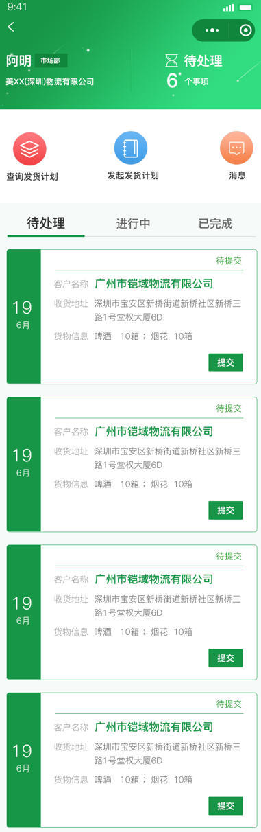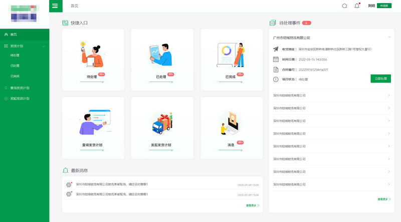 项目包含功能:发起发货、分配物流、分配车辆、对接出入场系统;