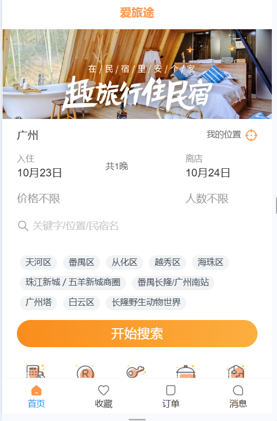 爱旅途是民宿类移动端平台,具备新房特惠房源展示、多条件房源搜索、沉浸式房源详情浏览(含 30 + 张图片归类展示)、全流程订单管理(预订、支付、状态查询),还可通过消息模块接收通知、与客服互动,助力用户高效预订民宿,帮助商家展示房源并转化订单。
