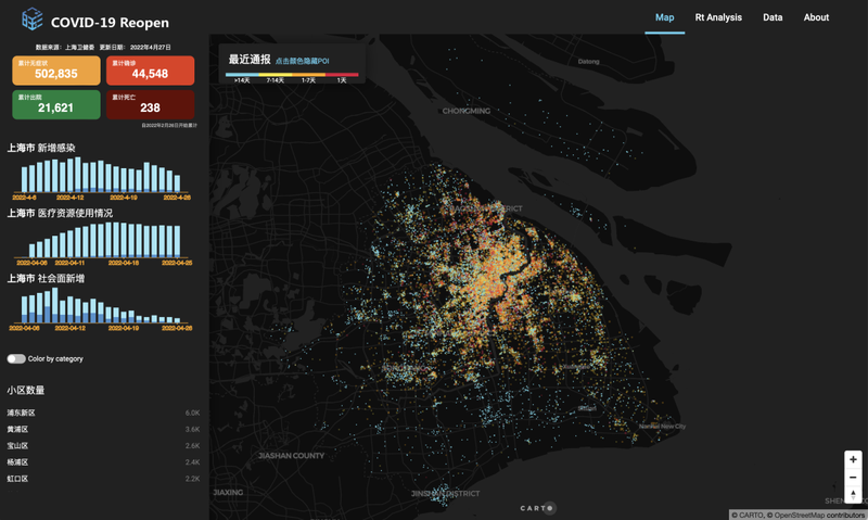 项目旨在通过收集并可视化上海市卫健委发布的官方数据,展现上海各区县疫情动态分布情况,并将其整理为机器可读的数据格式进行开源。