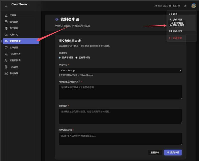 用于在模拟飞行中作为飞行控制平台,便于连飞、查询气象、参加活动等功能,可申请管制员.