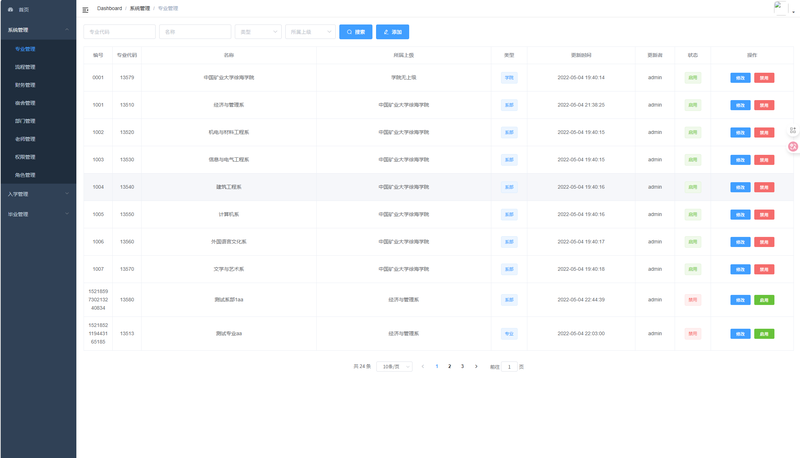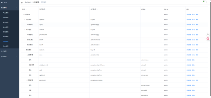 3. 权限管理:对老师账号的权限进行设置,按各系进行划分,查看审核对应系的数据