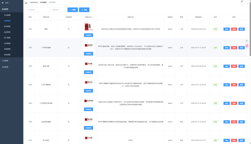 2. 流程发布:对学生需要走的流程进行规划