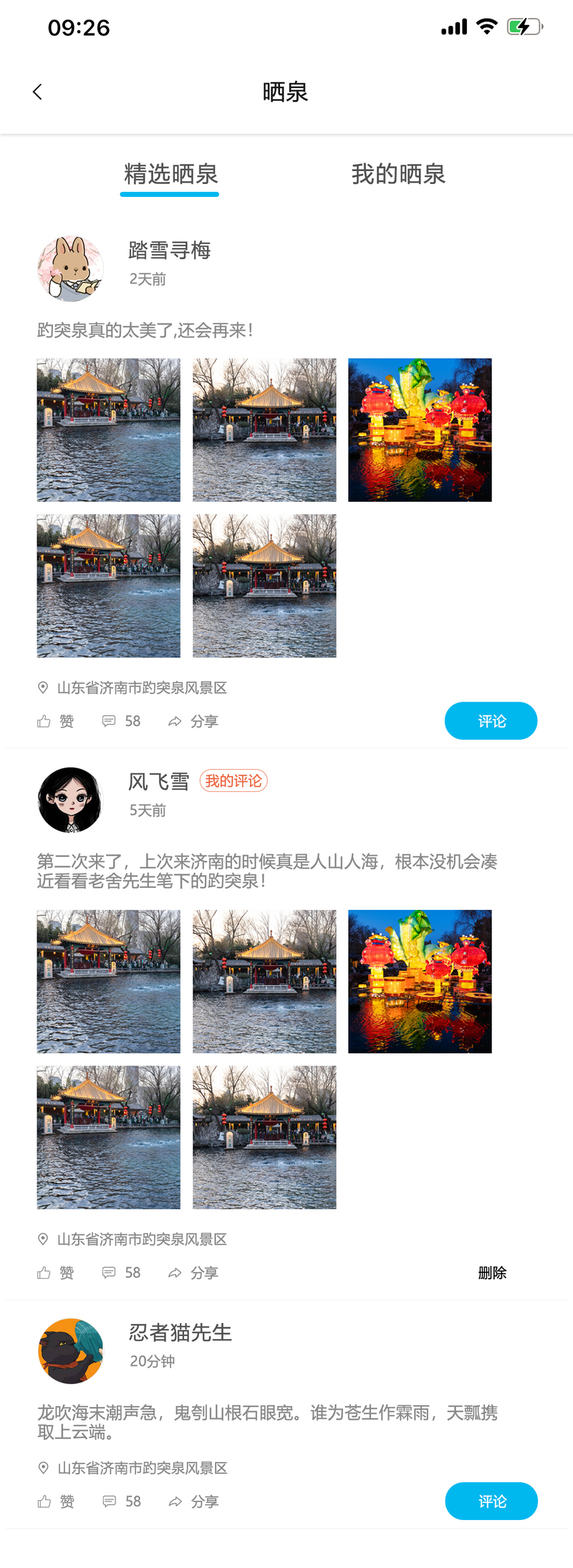 探泉评论 基于选中特定泉水的用户评论和照片发布