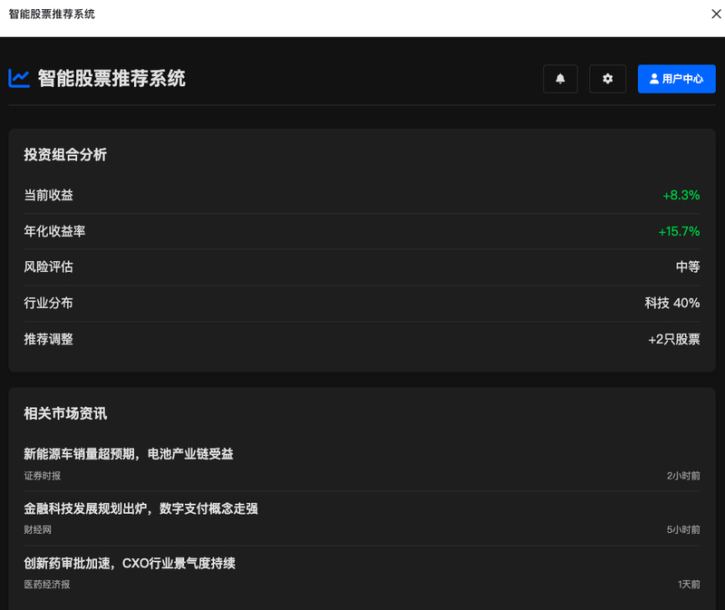 智能股票推荐系统,精准分析行业动态与个股表现,为投资者提供个性化、高潜力的投资组合建议,助力高效决策。