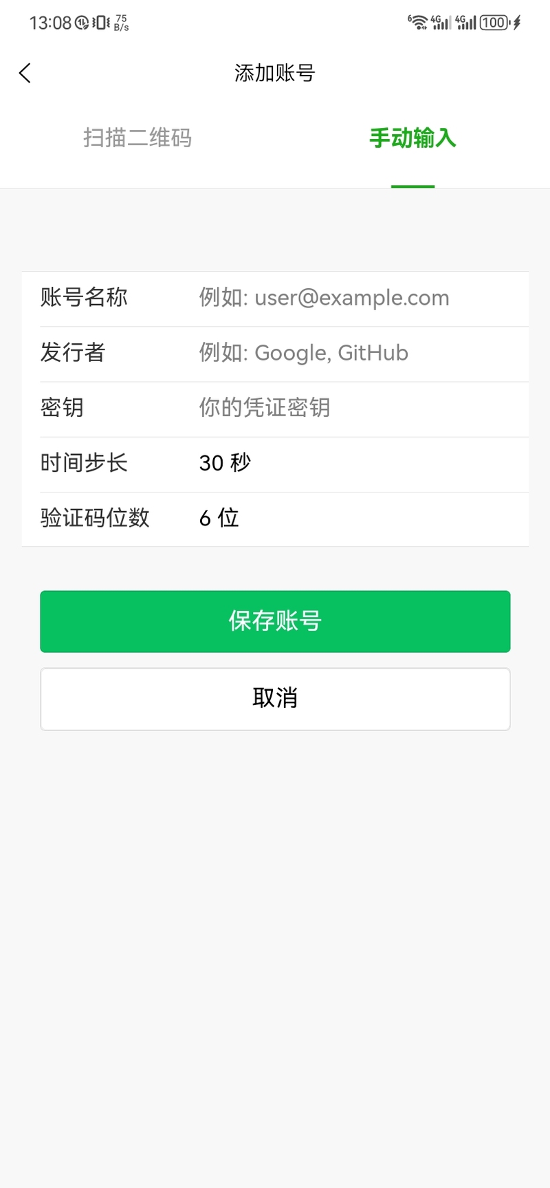 手动输入密钥:如果无法扫描,App也支持手动输入服务商提供的一长串密钥(通常以字母形式呈现)。