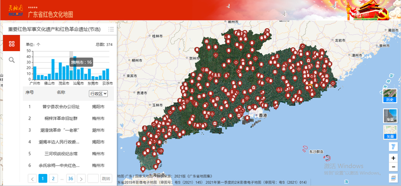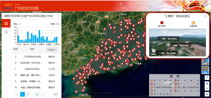 广东省红色文化地图是广东省自然资源厅基于“互联网+地理信息”技术打造的数字化平台,于2021年7月1日正式上线,整合全省374个红色地标,涵盖重要红色军事文化遗产及革命遗址。该平台通过高精度矢量电子地图、遥感影像数据实现空间化展示,并融合720°全景影像技术提供沉浸式体验