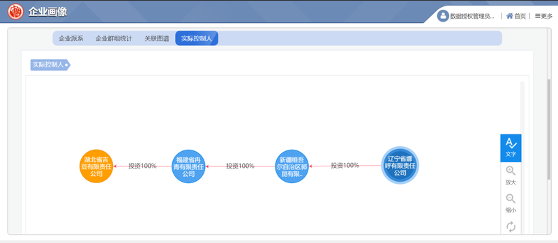 实际控制人是通过图数据库作为数据支撑,根据投资关系图获取企业背后的实际控制人,并把实际控制人控股该企业的路线通过关系图展示出来。