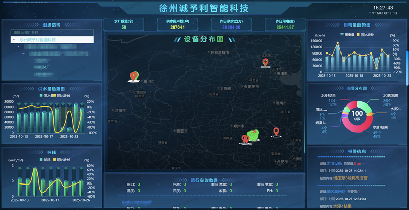 1.设备接入多型号,如西门子、Modbus、欧姆龙等,都可以实现与系统兼容 2.用户可实现自定义组态界面代表各个水厂设备的情况,实现可视化水厂界面 3.远程控制、查看水厂设备